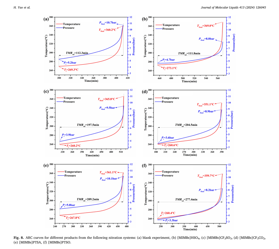 本研究项目深入探讨了五种不同类型的磺酸基咪唑类离子液体(SFILs)在催化间二甲苯硝化反应中的选择性和热危险性。其中,仰仪科技的绝热加速量热仪TAC-500A被用于硝化产物的绝热热失控测试和热动力学分析,为开发高效且安全的硝化工艺提供了关键的数据支撑。