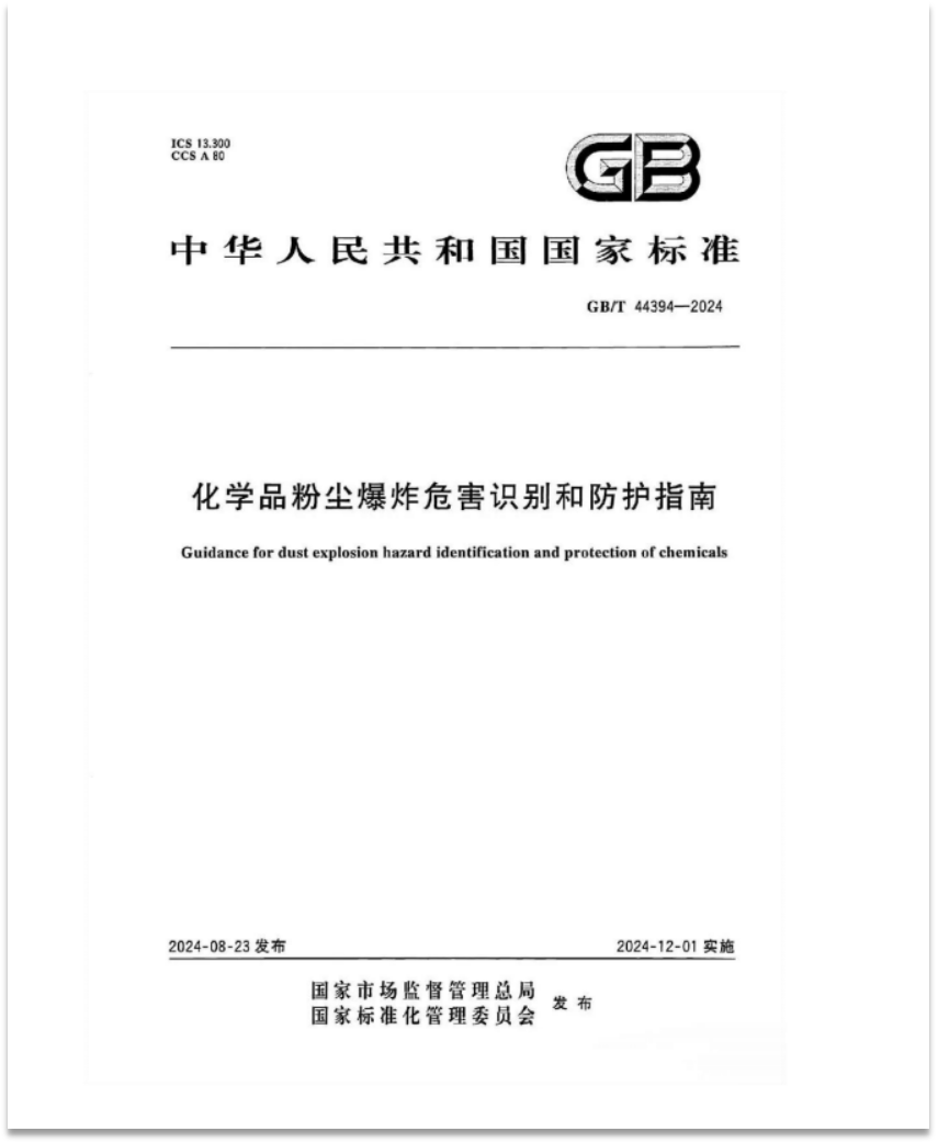GB/T44394-2024《化学粉尘爆炸危害识别和防护指南》的实施,有助于提升我国化学品粉尘爆炸危险性的识别效率,预防化学品粉尘燃爆事故的发生。